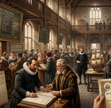 O "Pulo do Gato" na Holanda (1602): A República Holandesa uniu várias companhias e criou a VOC (Companhia Unida Holandesa das Índias Orientais), a primeira empresa de capital aberto a vender ações para financiar suas atividades.