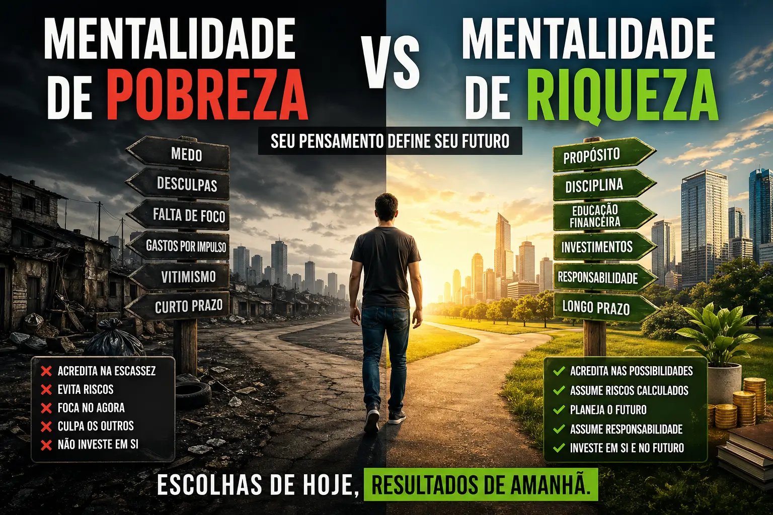Mentalidade de Pobreza vs Mentalidade de Riqueza: Como Seu Pensamento Define Seu Futuro Financeiro